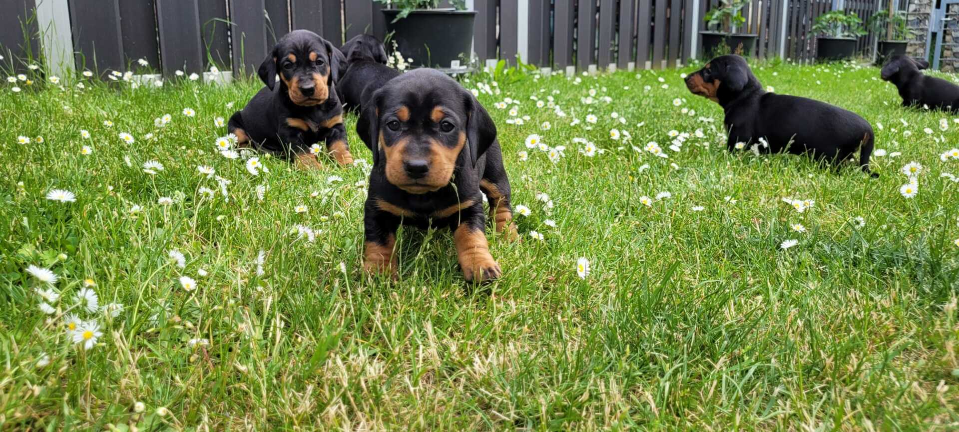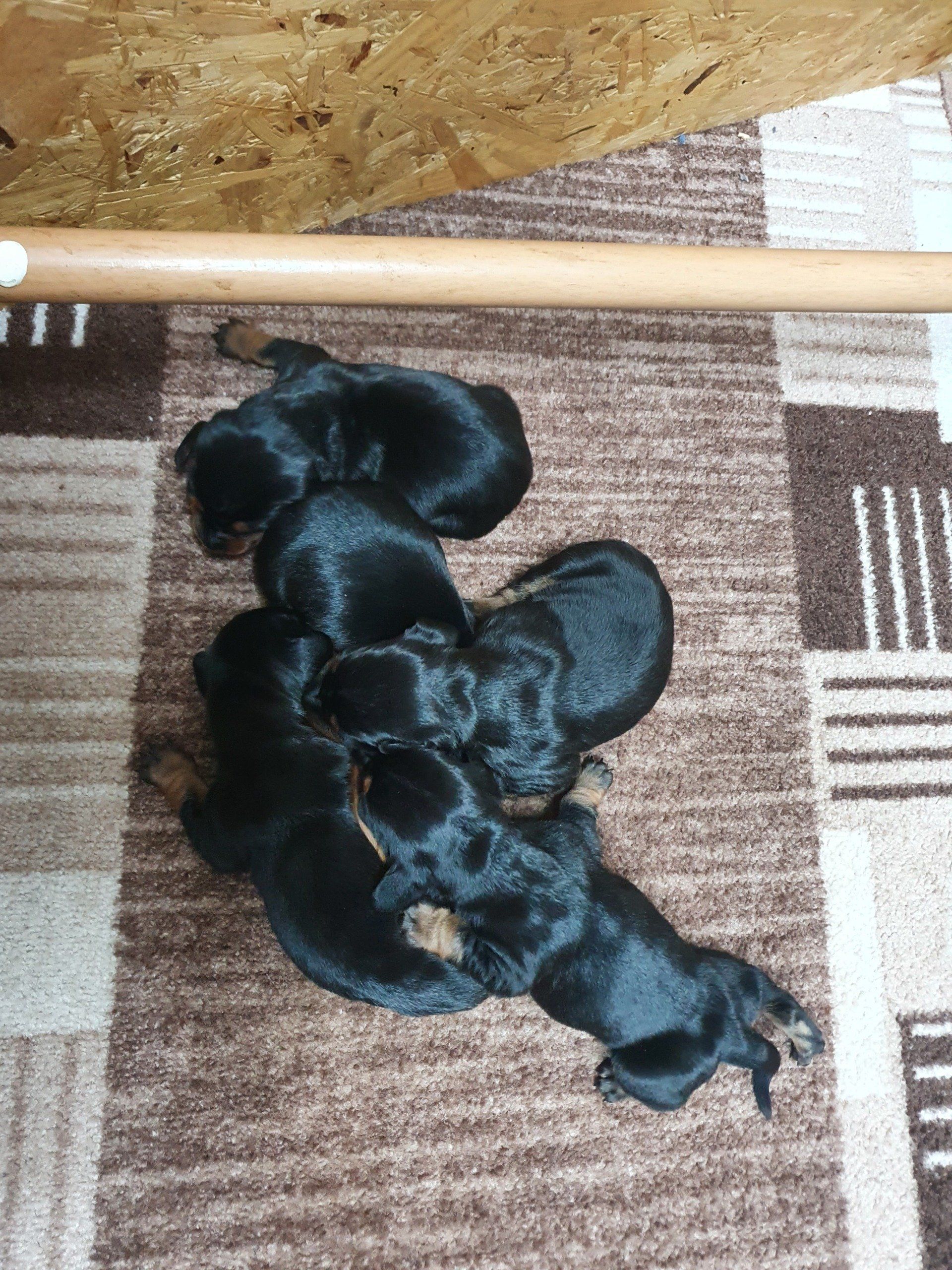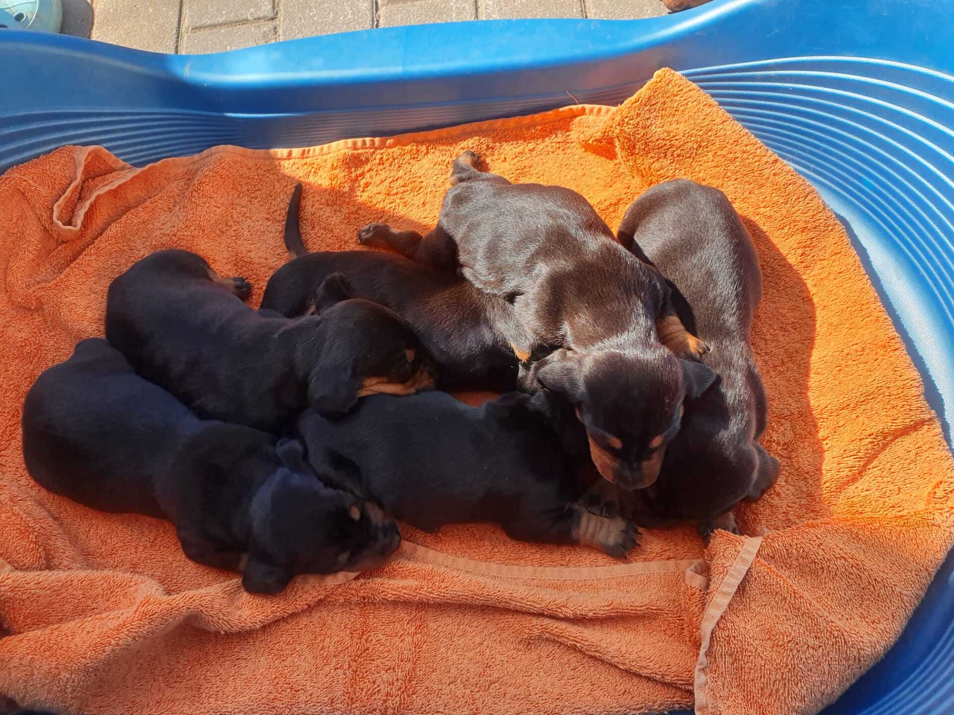 28.05.2022, 4. Woche alle sind wohl auf und erkunden neugierig ihre Umgebung. Der erste Welpen-Besuch ist auch schon erfolgt und die neuen Besitzer freuen sich bereits auf die Übergabe Ende Juni.