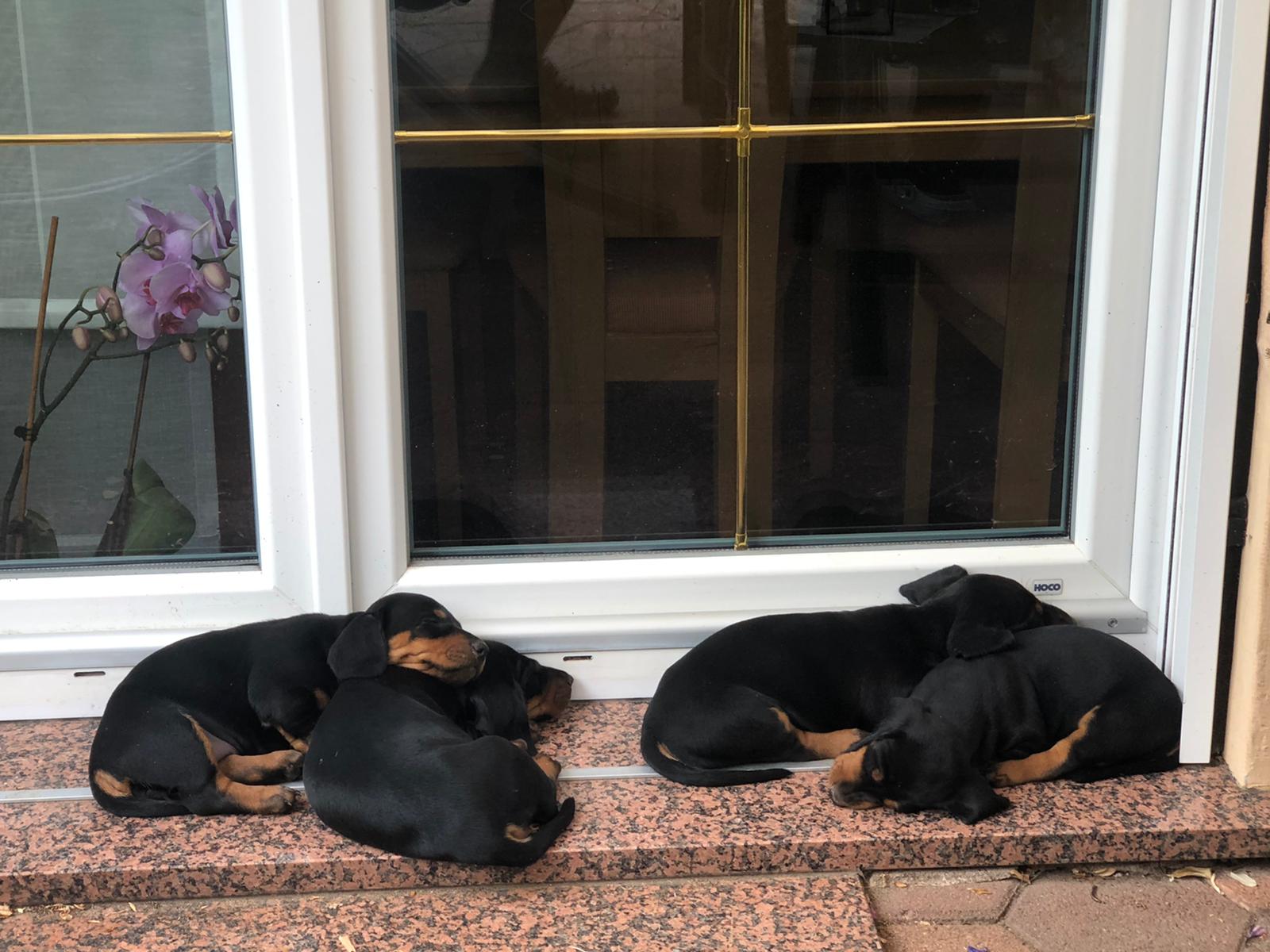 17.06.2022 zum Abschluss der 7. Woche noch ein paar Bilder von unserer Welpen-Bande. Jeder Tag wird zur neuen Entdeckungstour und unsere Hündin sucht sich ständig eine neue Ruhestätte, um etwas Abstand zu nehmen. Zur Zeit ist auf dem Grundstück nichts mehr sicher, hinter dem unschuldige Blick bei jedem der sechs, steckt ein kleiner Teufel.