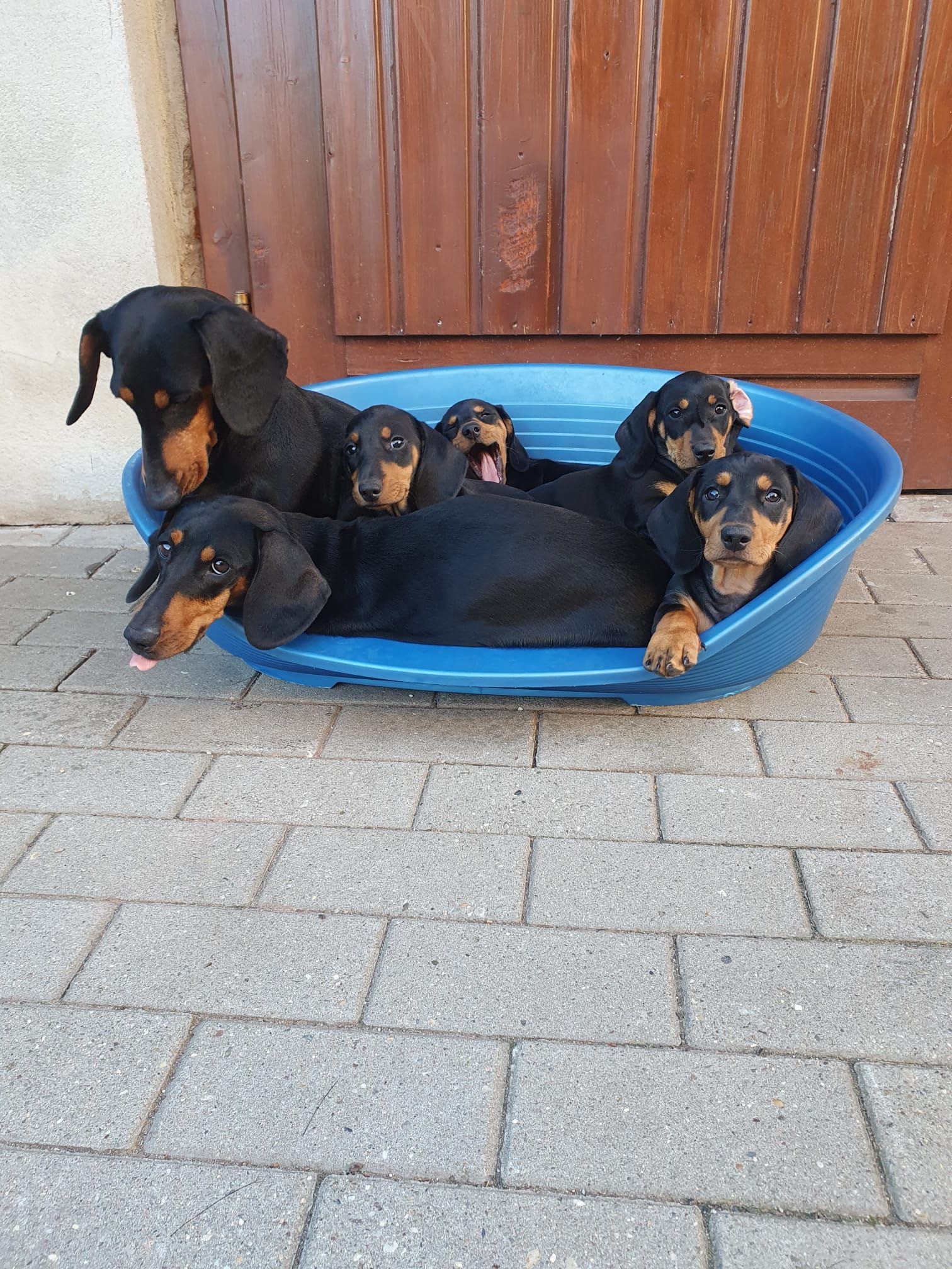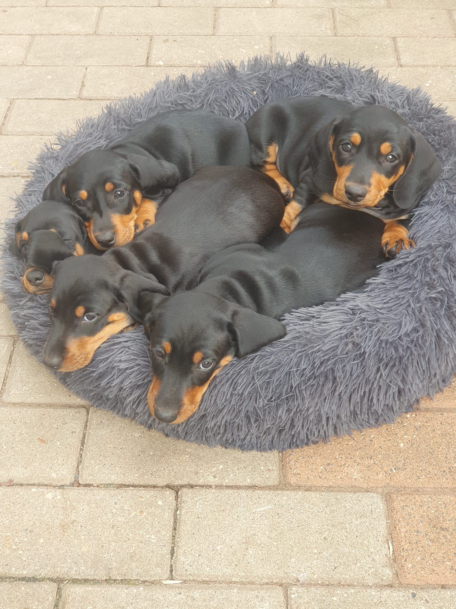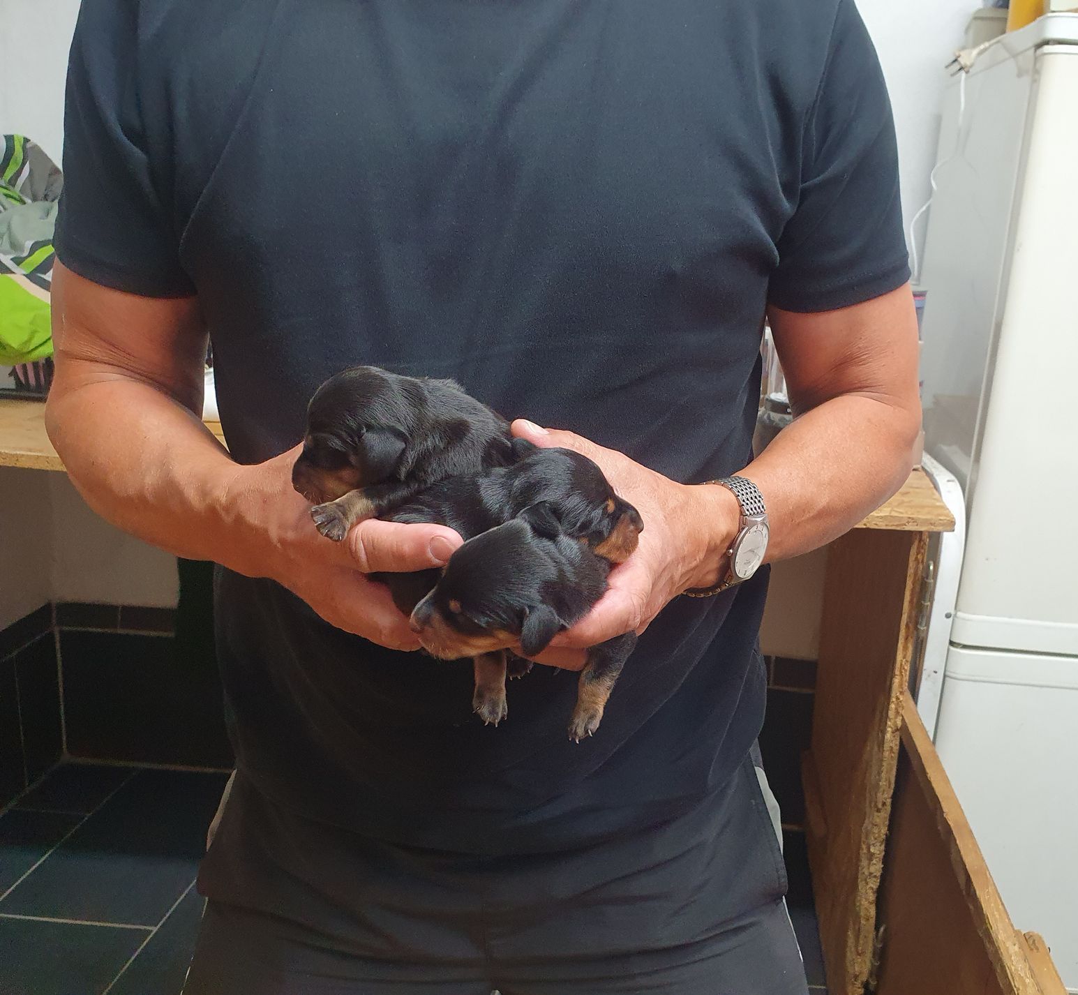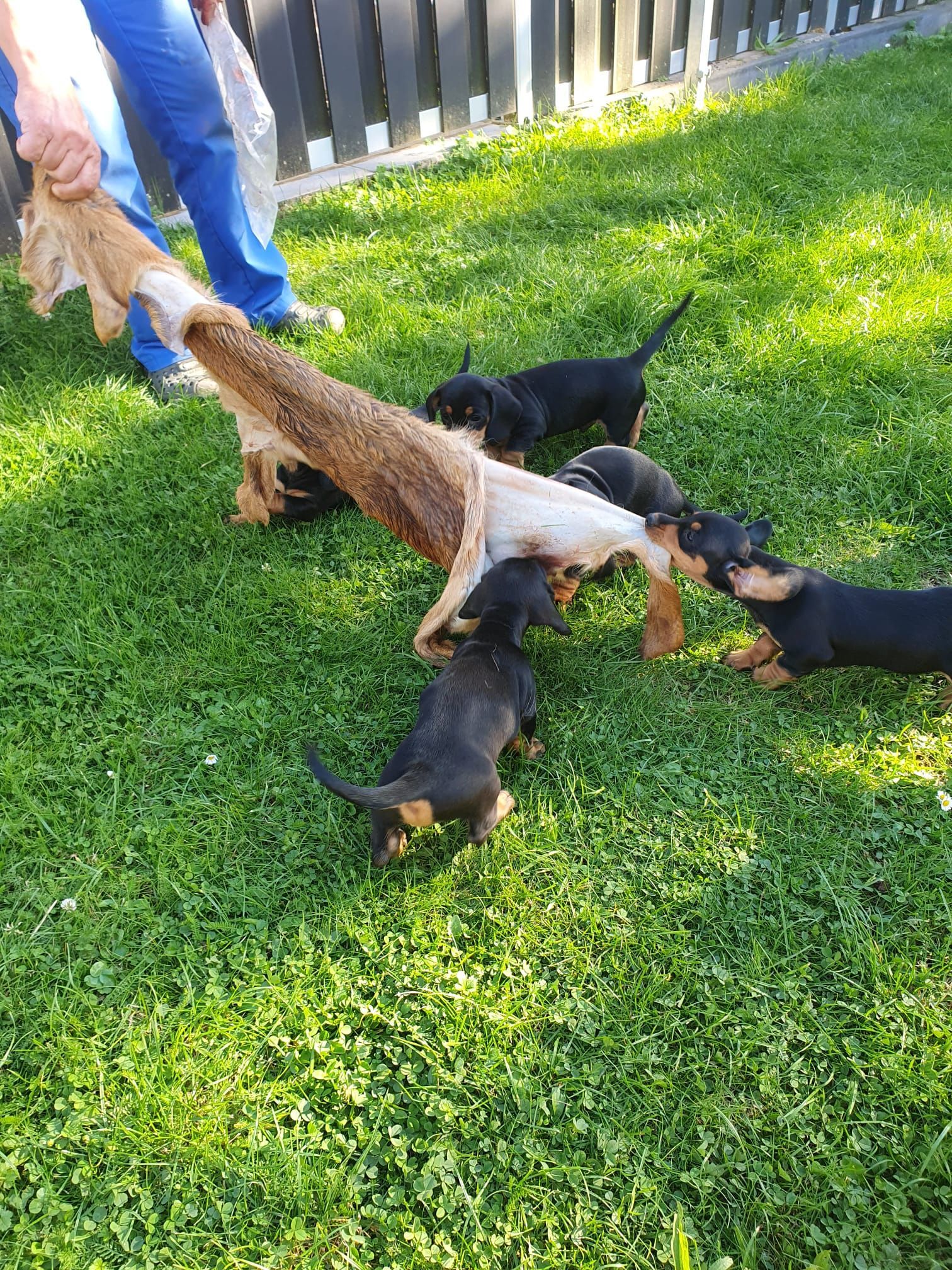 Es sind 5 kräftige, gleichmäßige und sehr mobile Welpen in der Farbe schwarz/rot gewölft worden.