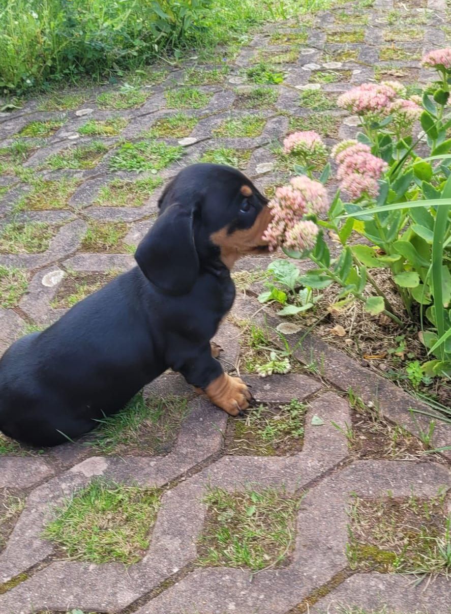 Haus, Zwinger und Auto kennen lernen und unser Grundstück nebst Garten ausgiebig erkunden dürfen. Nach der Wurfabnahme durch den DTK-Zuchtwart in der kommenden Woche, stehen sie für Interessenten zur Abgabe bereit.
