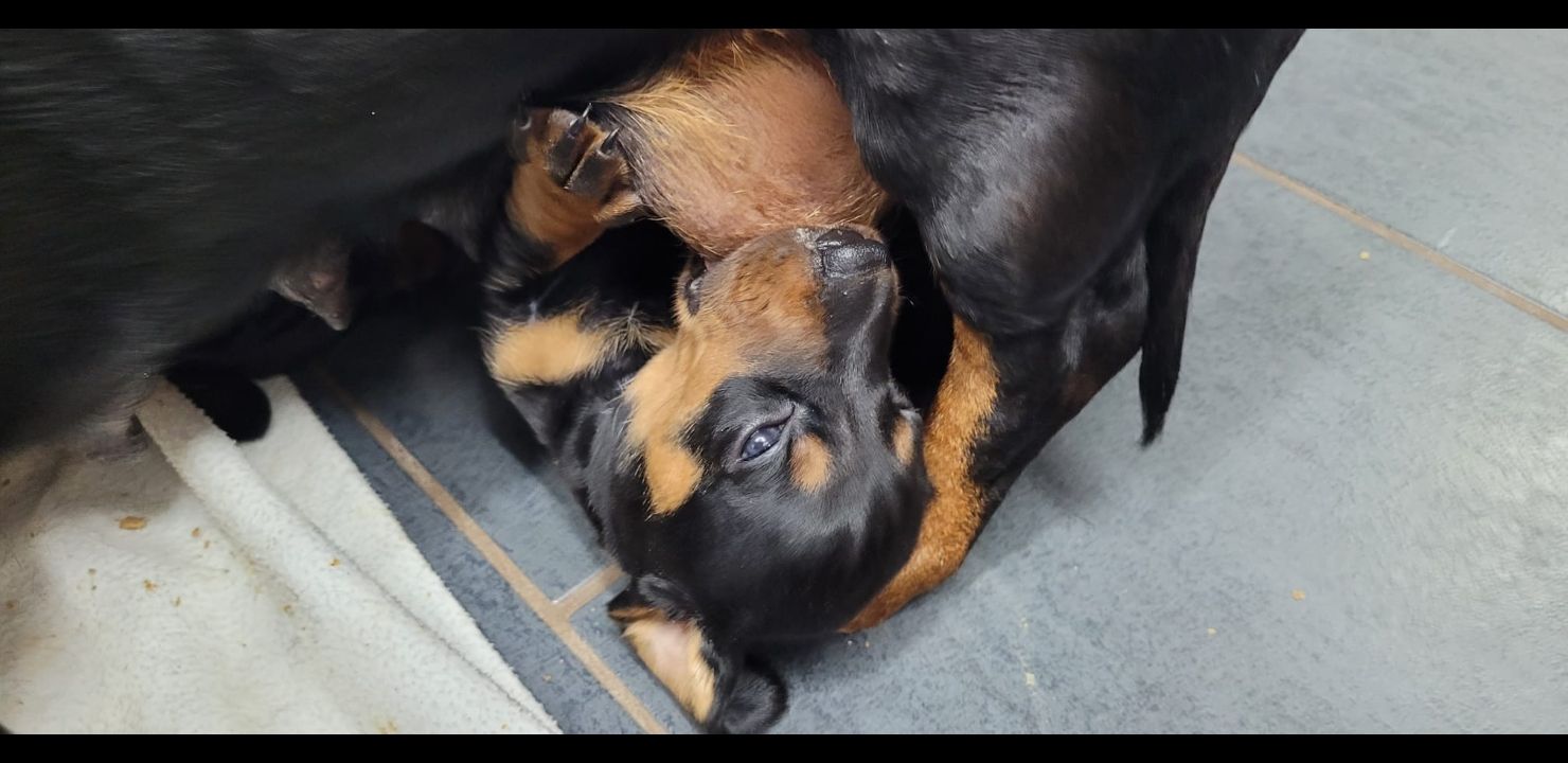 08.06.2024, die Woche 4 ist erreicht alle haben ordentlich an Gewicht zu genommen und die Milchbar ist hart umkämpft. Die ersten Erkundungen im Zwinger/ Wurfraum werden bereits unternommen und alle sind sehr erkundungsfreudig.