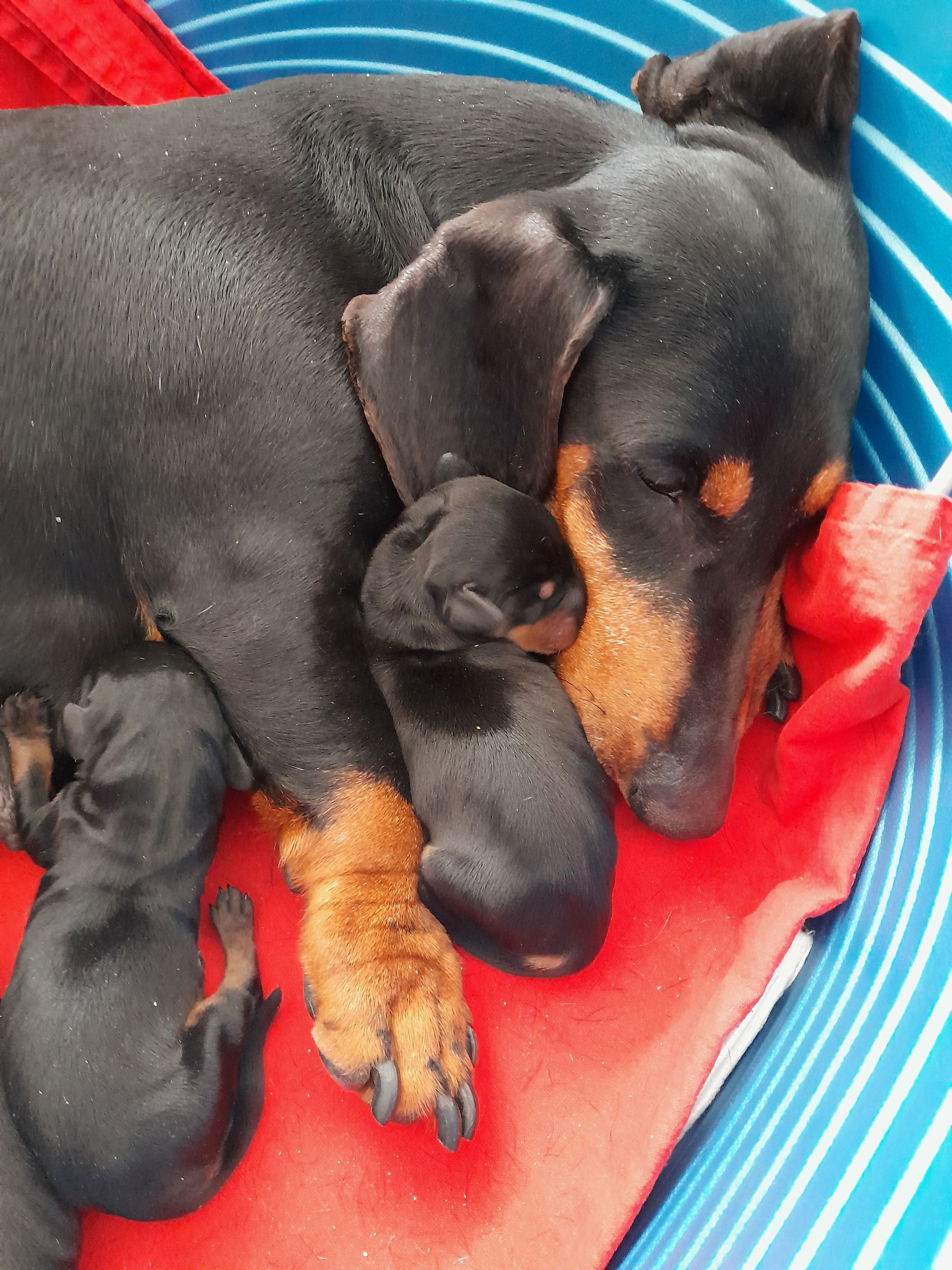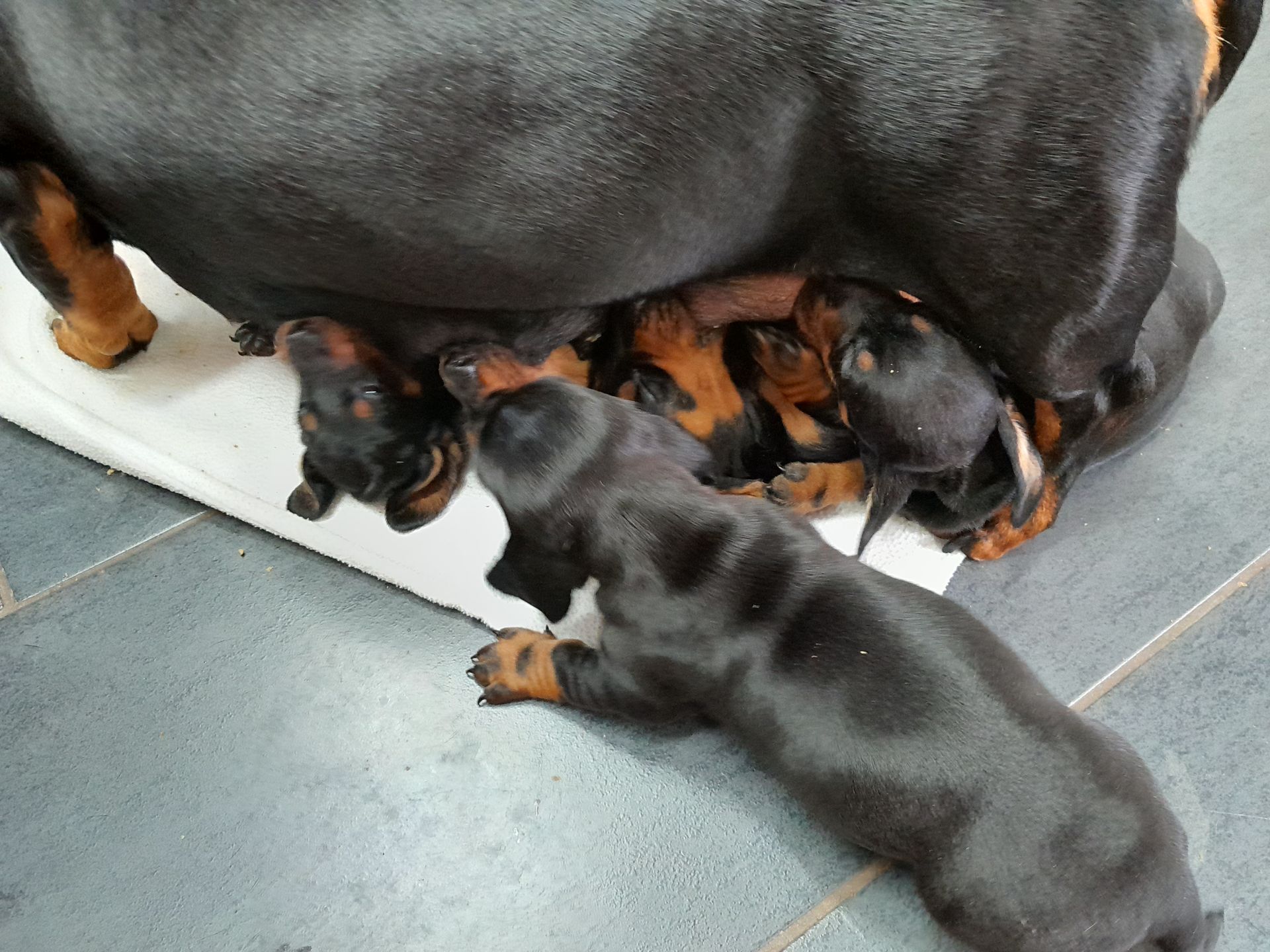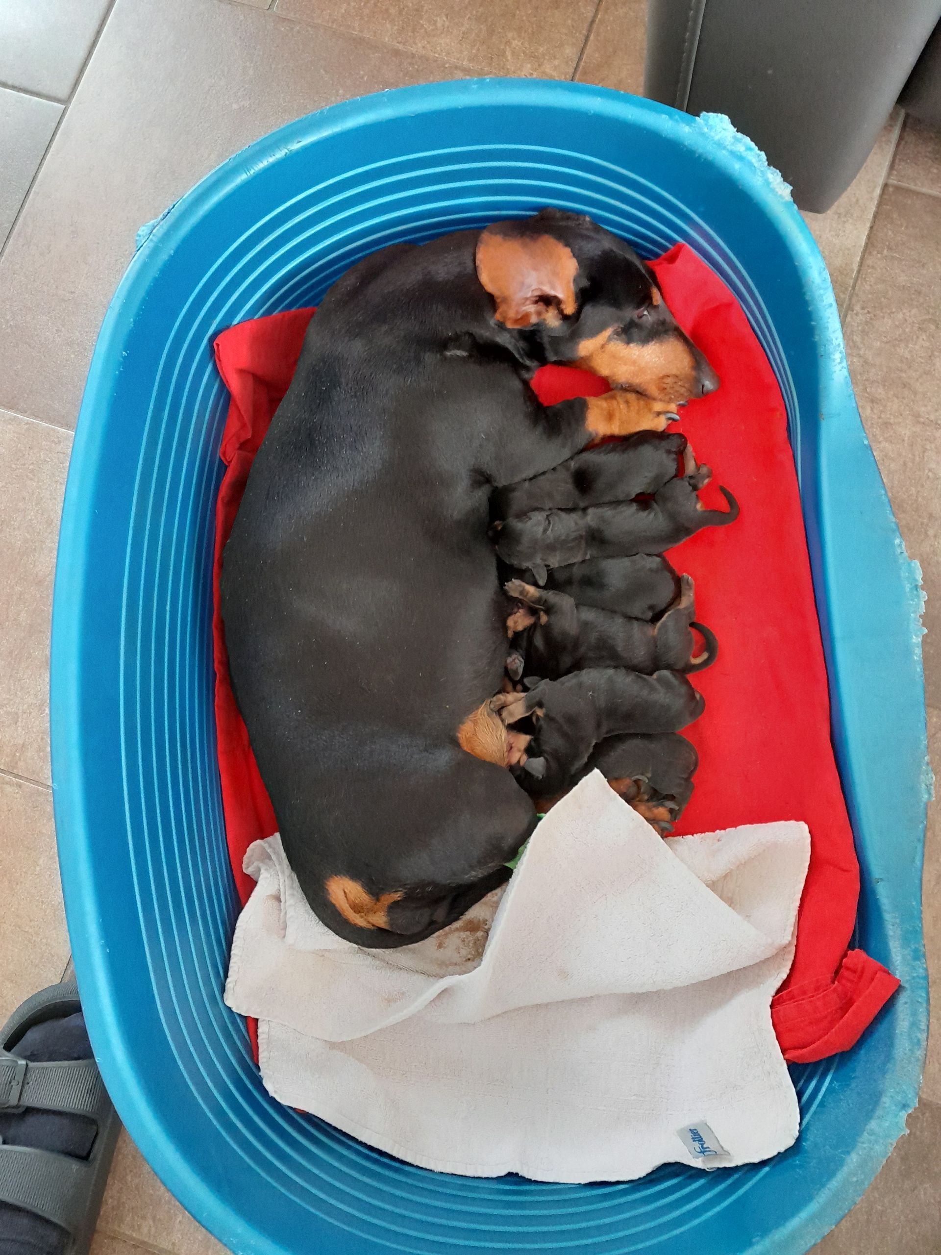 27.5.2024 2.Woche unseres Wurfes, langsam öffnen sich die Augen und die erste Maniküre wurde durchgeführt, um das Gesäuge der Hündin zu schonen. Alle sind wohlauf, fühlen sich wohl und haben ihren ersten Kontakt mit unseren Enkelkindern.