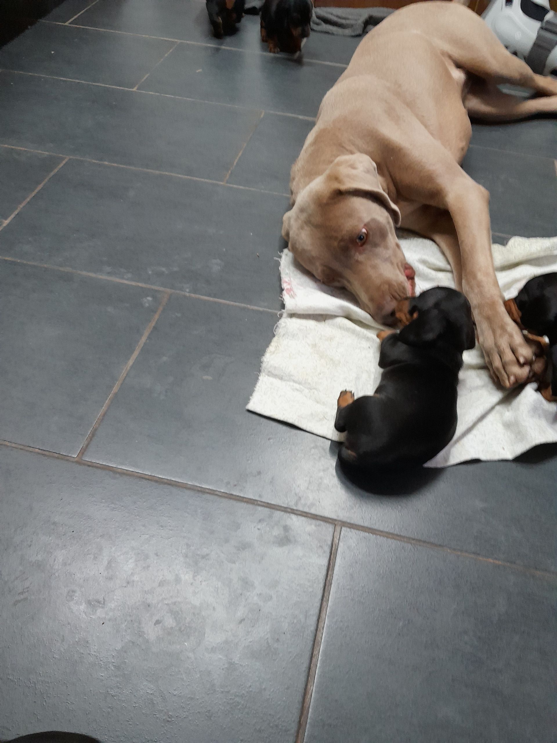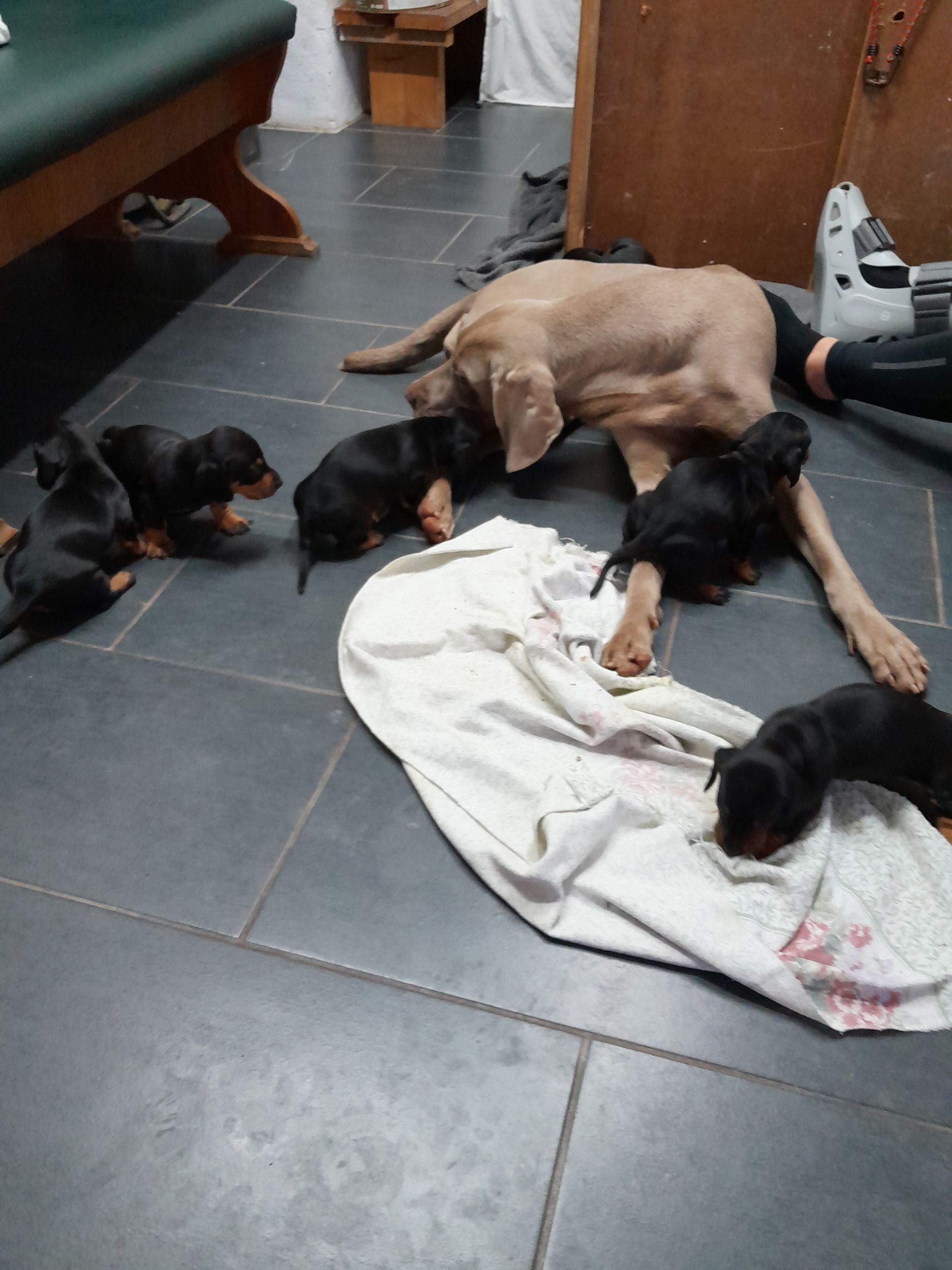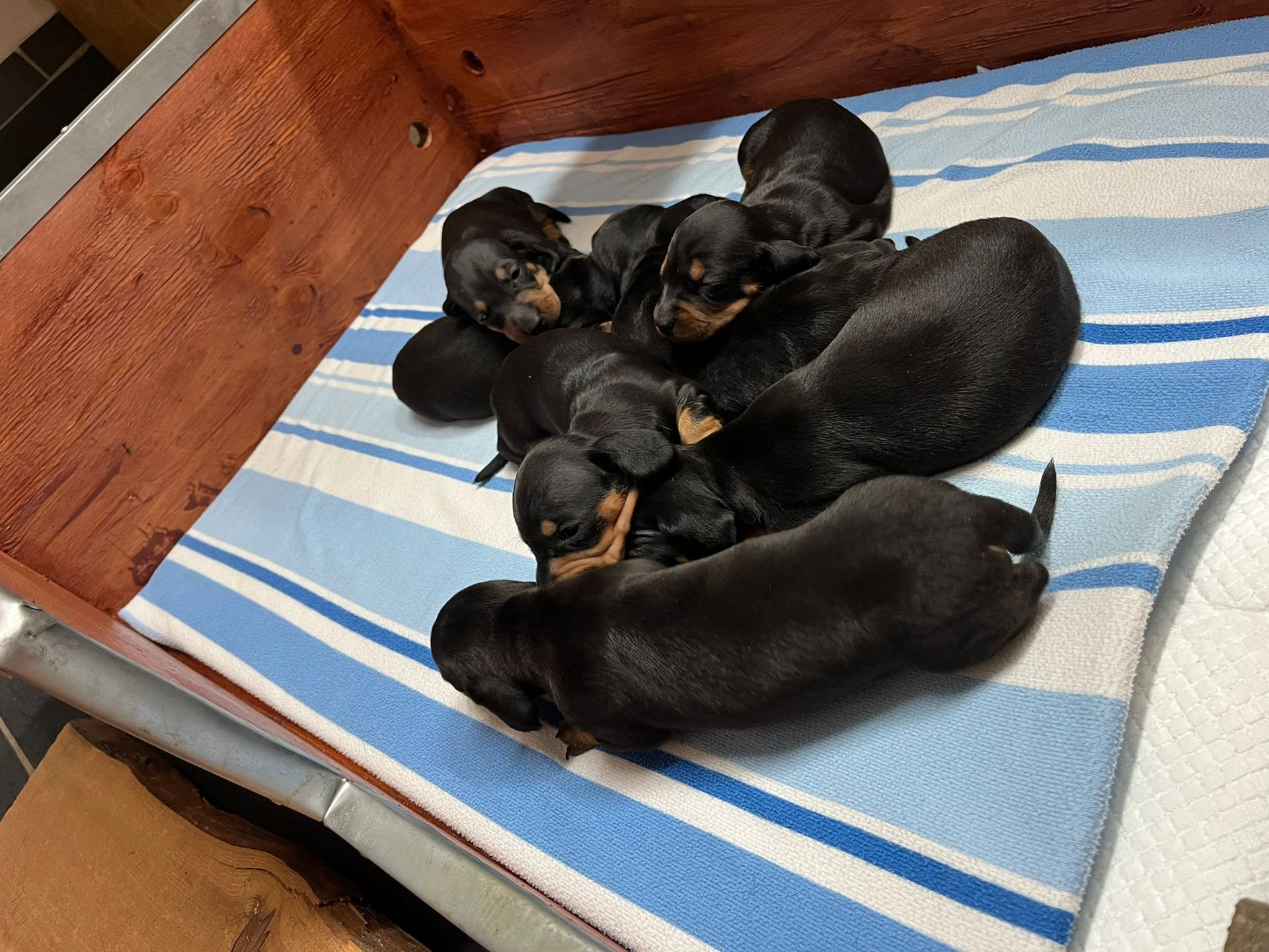Am Montag den 29.09.2025 hat unsere Hündin " Bella von-Bemmanns-Tannen" 2 Rüden und 5 Hündinnen zur Welt gebracht.