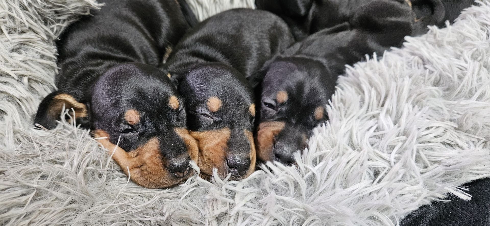 13.10.2025 die 3. Woche fängt nun an und alle sind wohlauf, die Lichter sind leicht geöffnet und die ersten Krabbelversuche werden unternommen. Die Welpen sind noch alle sehr gleichmäßig und propper.