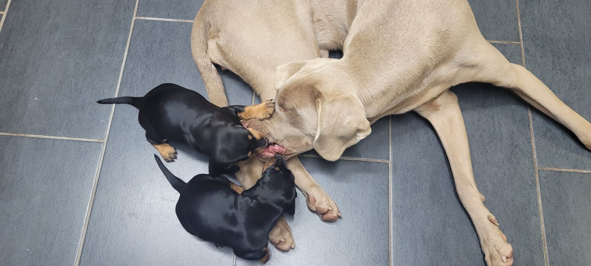 03.11.2025 unsere Kleinen haben ihren Außenbereich und Rehdecken Kontakt absolviert und haben mit ihrer " Oma und Tante" 2 neue Spielgefährten gefunden. Die 2 müssen allerhand über sich ergehen lassen, ertragen es aber mit einer Mordsgeduld. :-) Unsere Mutterhündin ist da konsequenter.