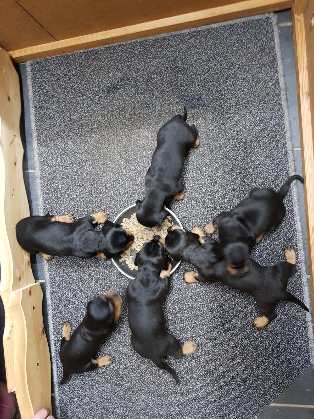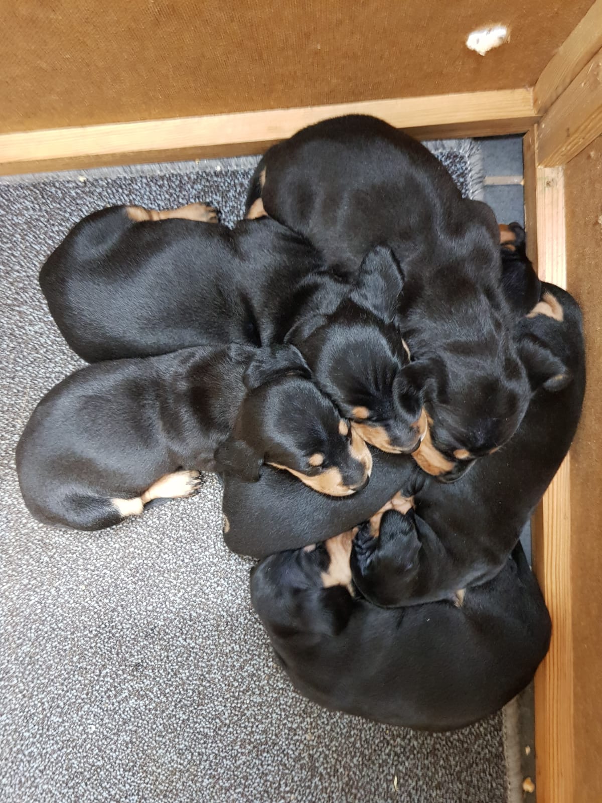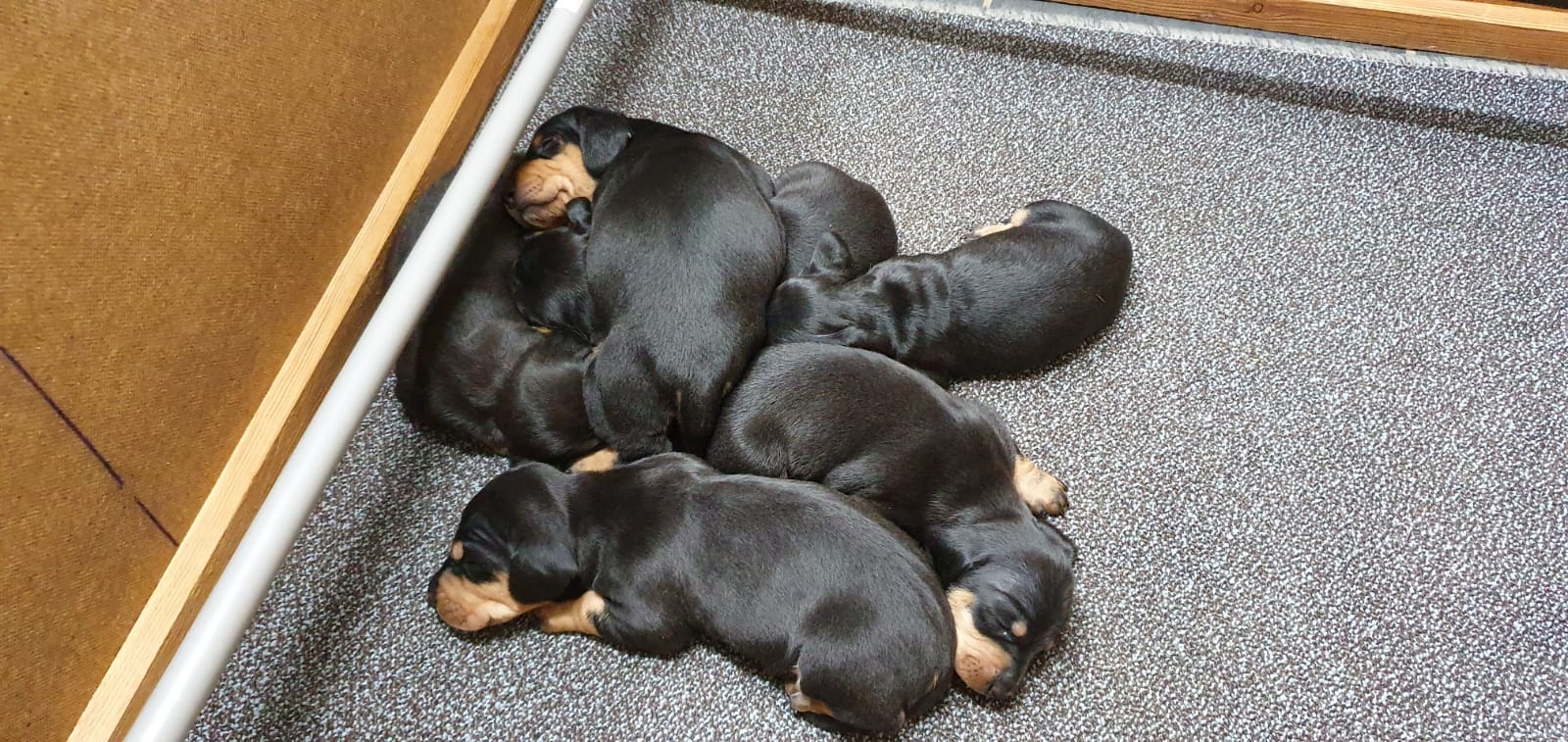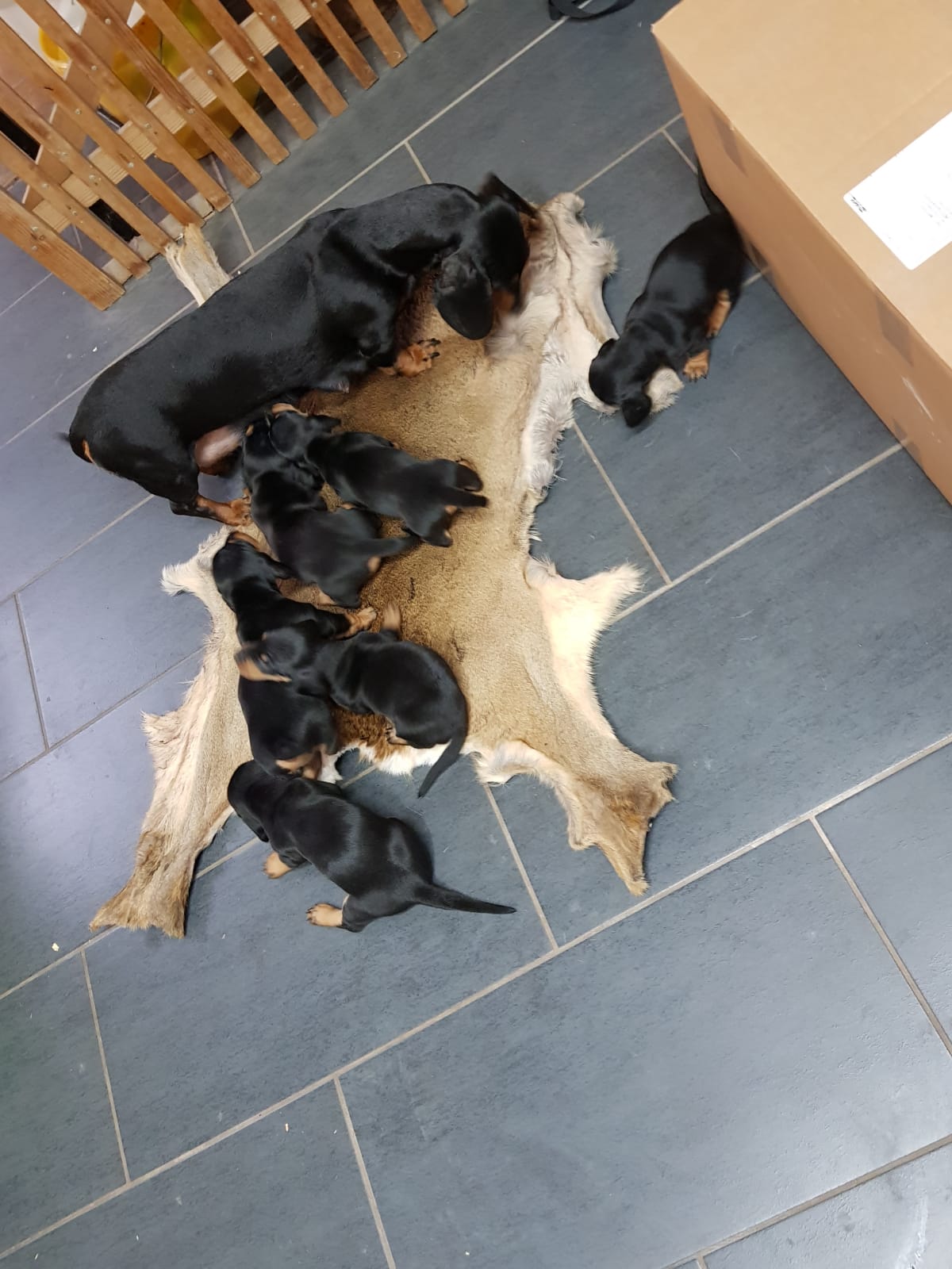 Unser erster Wurf ist am Sonntag, den 03.11.2019 gefallen. Es sind 6 Welpen 3/ 3, schwarz-rot und alle wohlauf. Der voraussichtliche Abgabetermin wird ca. der 03.01.2020 sein.